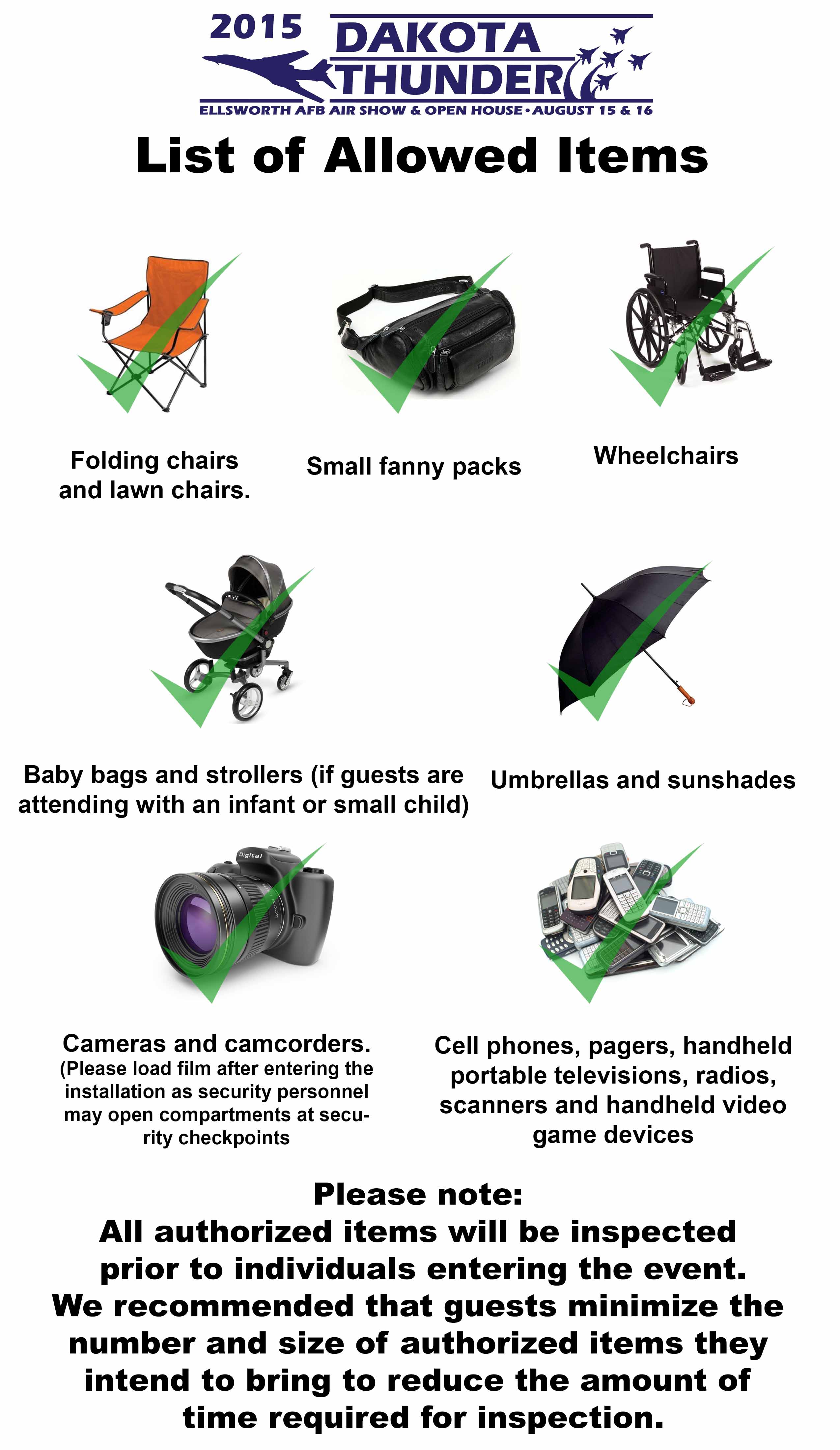 Yes. To maintain and ensure the security of Ellsworth AFB resources and personnel, all vehicles, personnel and items are subject to search upon entry, and for the duration of the visit to the installation. The base security personnel are here for the security and safety of all members and guests while on Ellsworth. The 28th Bomb Wing commander retains the right to authorize searching such personnel, items and/or vehicles while on Ellsworth.