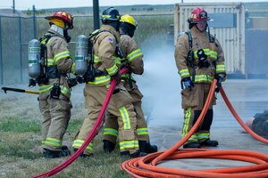 Col. Derek Oakley, the 28th Operations Group commander, relinquishes Lt. Col. Kristina Ellis, the outgoing 28th Operations Support Squadron commander, of her command of the 28th Operations Support Squadron at Ellsworth Air Force Base, S.D., July 08, 2022. The change of command ceremony is an honored