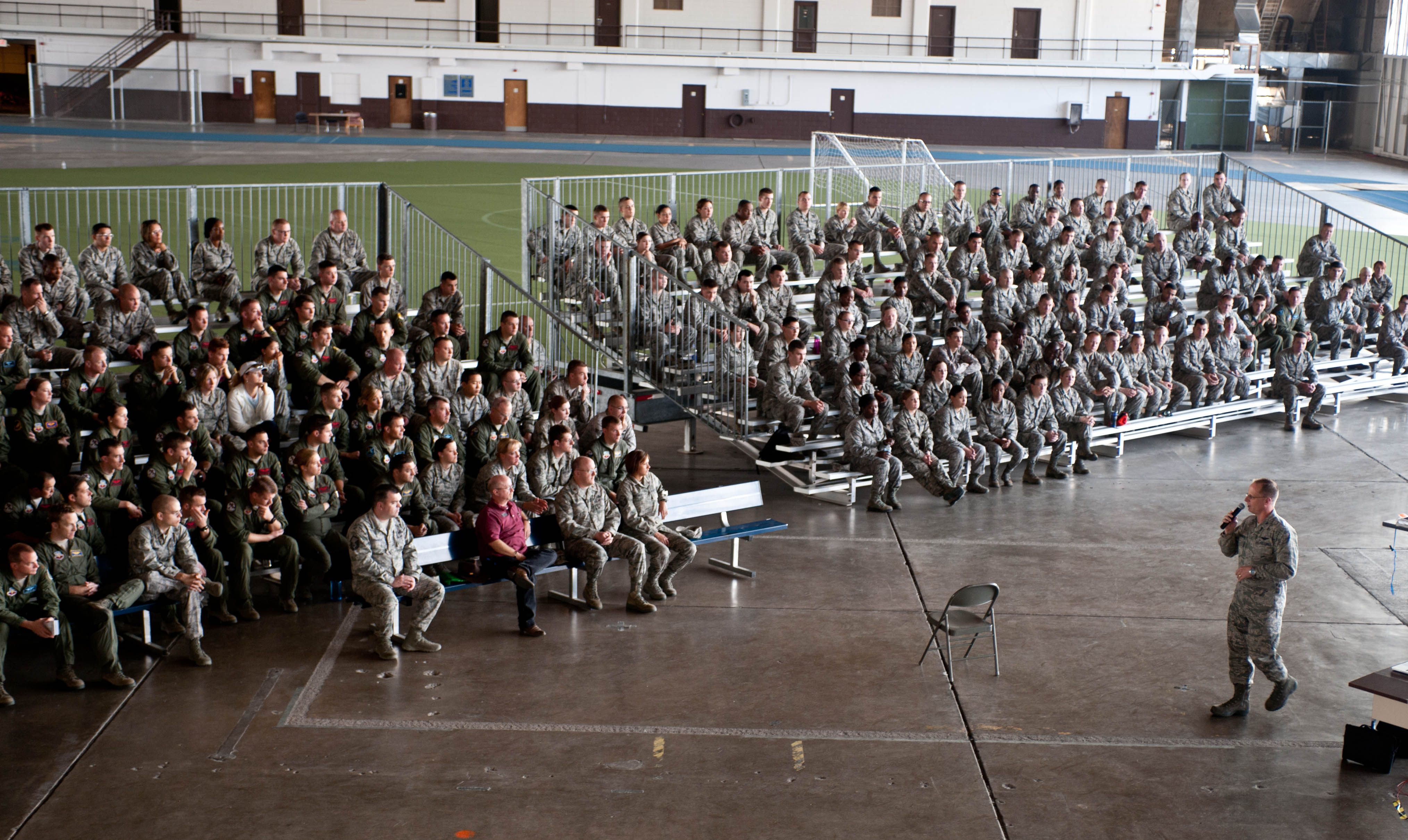 Joe McCluan, and Scott Neusch of the Stay Alive from Education program, demonstrates simulated paramedic procedures on a volunteer, Airman 1st Class Spencer Butler, 28th Operations Support Squadron communications technician, during a “Street Smart”, Safety Day presentation at Ellsworth Air Force Base, S.D., Sept. 27, 2012. The presentation was implemented to educate individuals on the dangers of unsafe driving. (U.S. Air Force photo by Airman 1st Class Zachary Hada/Released)