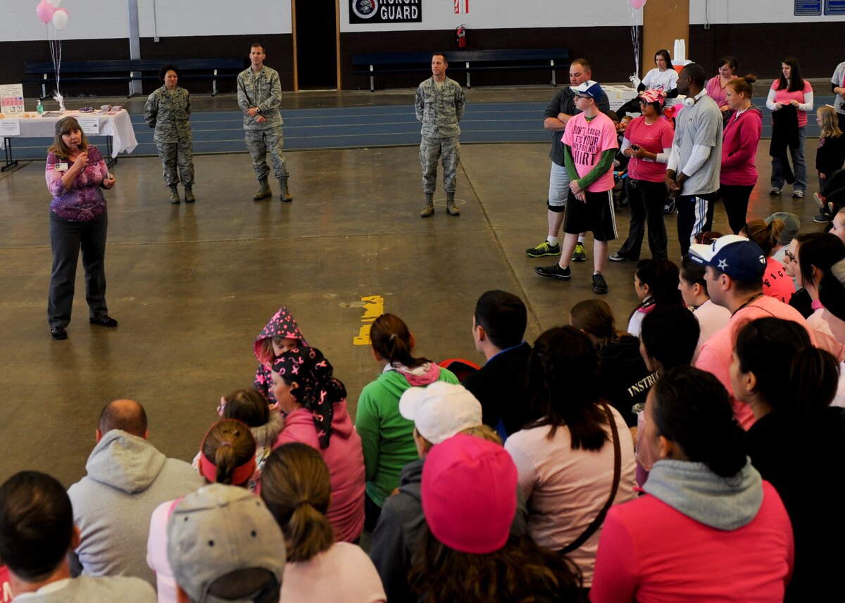 Senior Airman Roger Pedraza, 28th Medical Operations Squadron bio-environmental technician, registers for the Think Pink Breast Cancer awareness 5k run/1.5 mile walk at Ellsworth Air Force Base, S.D., Oct. 3, 2013. The Health and Wellness Center hosted the event as a way of increasing awareness of breast cancer for base Airmen, family members and civilians. (U.S. Air Force photo by Senior Airman Anania Tekurio/Released)