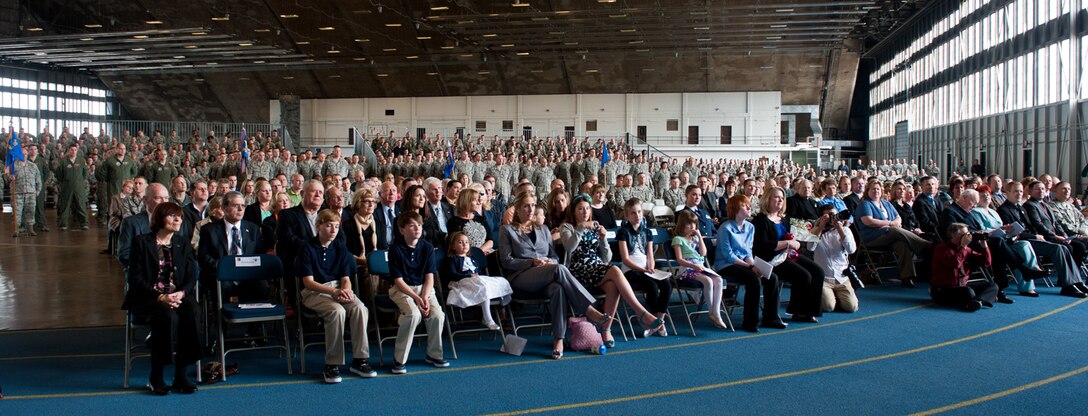 Approximately 1,500 Airmen and leaders of the Black Hills community gathered for the 28th Bomb Wing change of command ceremony in the Pride Hangar on Ellsworth Air Force Base, S.D., April 5, 2013. Formerly director of the Air Force chief of staff’s Strategic Studies Group at the Pentagon, Col. Kevin Kennedy, 28th BW commander, will now lead the base’s more than 3,800 Airmen and civilian employees and oversee the operation of Ellsworth’s fleet of B-1 bombers. (U.S. Air Force photo by Airman 1st Class Kate Thornton-Maurer/Released)