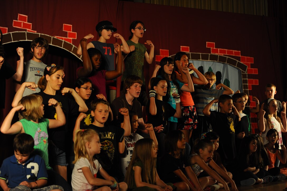 Children from the Ellsworth Air Force Base community rehearse a musical number for their performance of “The Secret Garden” with the Missoula Children’s Theater in the base theater at Ellsworth AFB, S.D., June 15, 2012. MCT reached out to the Ellsworth community and introduced children to the world of theater. (U.S. Air Force photo by Airman 1st Class Zachary Hada, Released)