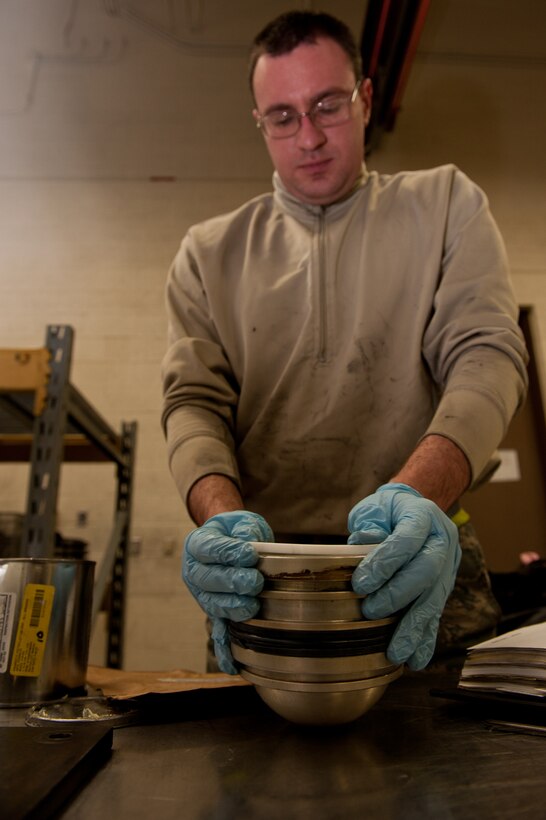 Senior Airman Michael Daniel, 28th Maintenance Squadron hydraulics journeyman, applies a seal to an auxiliary power unit piston in the 28th MXS Hydraulics Shop at Ellsworth Air Force Base, S.D., Jan. 19, 2012. Used to build up hydraulic pressure, APUs are necessary for starting the engines on Ellsworth’s fleet of B-1Bs. (U.S. Air Force Photo by Airman 1st Class Kate Thornton/Released)