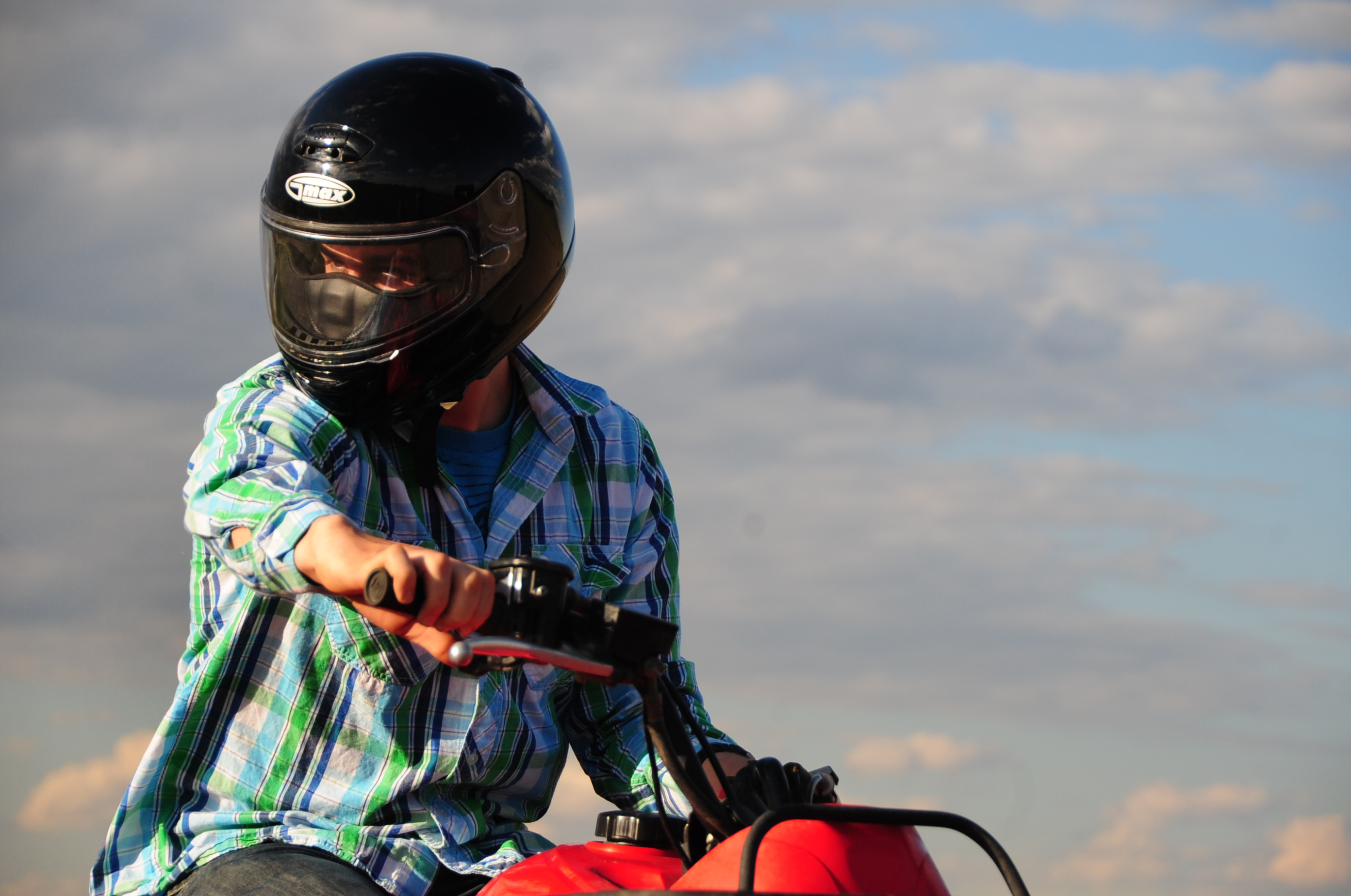 ELLSWORTH AIR FORCE BASE, S.D. -- Airman 1st Class Michael Obringer, 28th Maintenance Squadron aircrew egress systems journeyman, checks behind him as he rides an all-terrain vehicle in reverse at the Buffalo Gap National Grasslands, S.D., July 7. When riding an ATV, Airmen should always be aware of the surrounding area. (U.S. Air Force photo/Airman 1st Class Anthony Sanchelli)