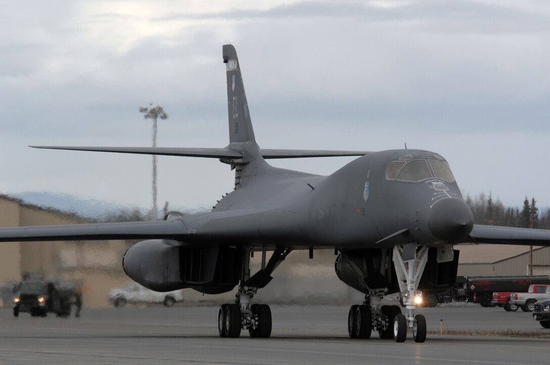 EIELSON AIR FORCE BASE, Alaska -- A B-1B Lancer, 28th Bomb Wing, Ellsworth Air Force Base, South Dakota taxis on the flightline during Red Flag-Alaska 07-1 here on April 11. Red Flag-Alaska is a Pacific Air Forces-directed field training exercise for U.S. forces flown under simulated air combat conditions. It is conducted on the Pacific Alaskan Range Complex with air operations flown out of Eielson and Elmendorf Air Force Bases. (U.S. Air Force photo/Staff Sgt Joshua Strang)