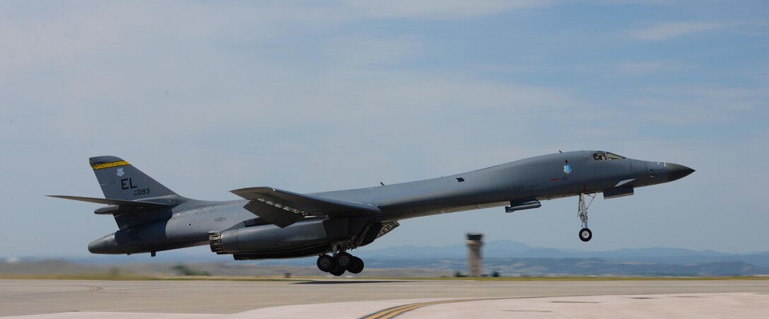 A B-1 Bomber takes off from Ellsworth Air Force Base, S.D., July 6, 2017. The aircraft is one of five B-1s that will take part in Red Fag – a joint exercise taking place at the Nevada Test and Training Range, near Nellis AFB, Nev. (U.S. Air Force photo by Airman Nicolas Z. Erwin)