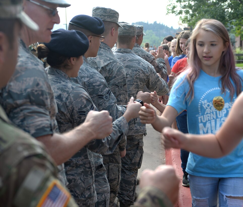 Students from Southwest Middle School and Corral Drive Elementary thank service members in Rapid City, S.D, Sept. 11, 2017. Black Hills area schools hosted various events in recognition of Patriot’s Day to remember and honor the victims of the 9/11 terrorist attacks. (U.S. Air Force Photo by Airman 1st Class Thomas Karol)