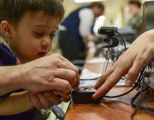 Paul Romehildt has his fingerprint scanned during the 2017 Children’s Fair inside the 28th Medical Group at Ellsworth Air Force Base, S.D., April 20, 2017. Volunteer organizations created a child-identification kit for parents using collected fingerprints, pictures and DNA. (U.S. Air Force photo by